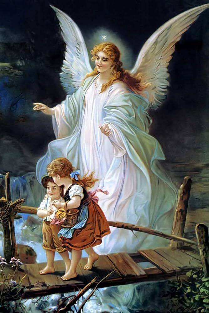 The blanket features a woven design of a guardian angel 😇 helping a boy and girl across a tretorous bridge 🌉 Perhaps some of you recognize the image.