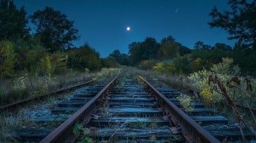 One of the stories involves Max and me walking down what seems like an isolated railroad track ๐ค in the Smoky Mountains โฐ๏ธ of Tennessee, under a bright glowing moon ๐ and a soothing inky black sky. The night air smells sweet, and the fireflies glow around us. We look up and see what looks like a million twinkling stars. The misty fog hangs low over the green mountains. In the distance, we can hear the faint whistle of a lonely long-forgotten train as it echoes through the night ๐.