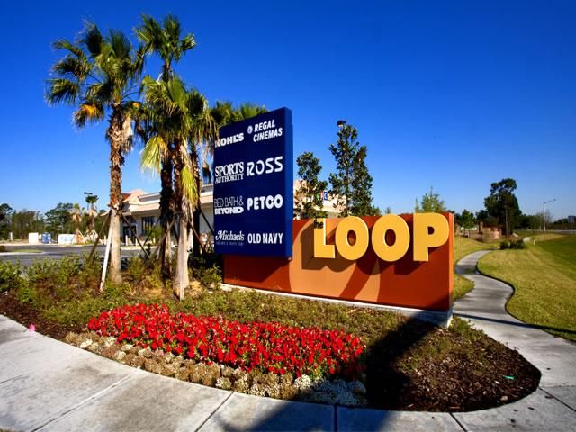 A POPULAR SHOPPING 🛍 MALL HERE IN KISSIMMEE PALM TREES ALONG THE ROAD.