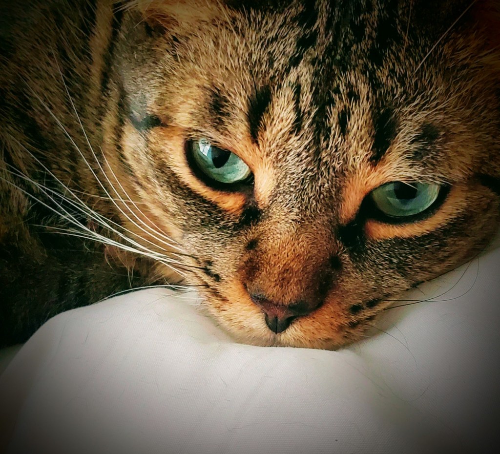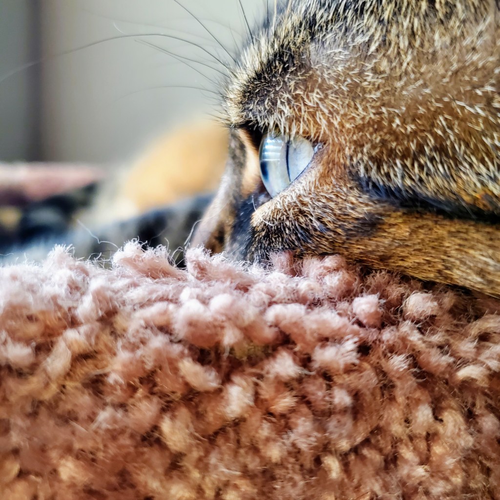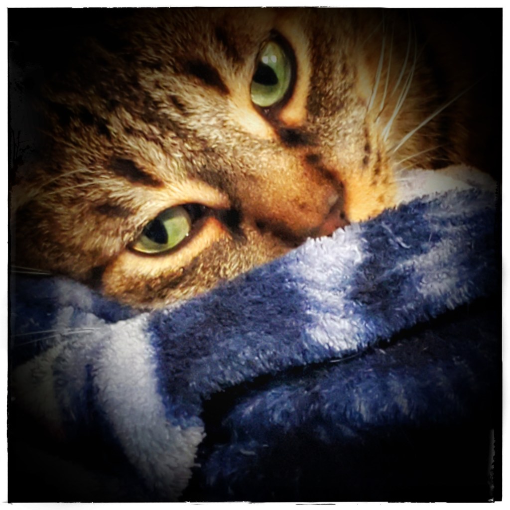 I was so surprised when you heard me and actually got up from where you were, came over and nuzzled my chin, then you sat on me and relaxed on the blanket. Perhaps you do understand when humans are sad.